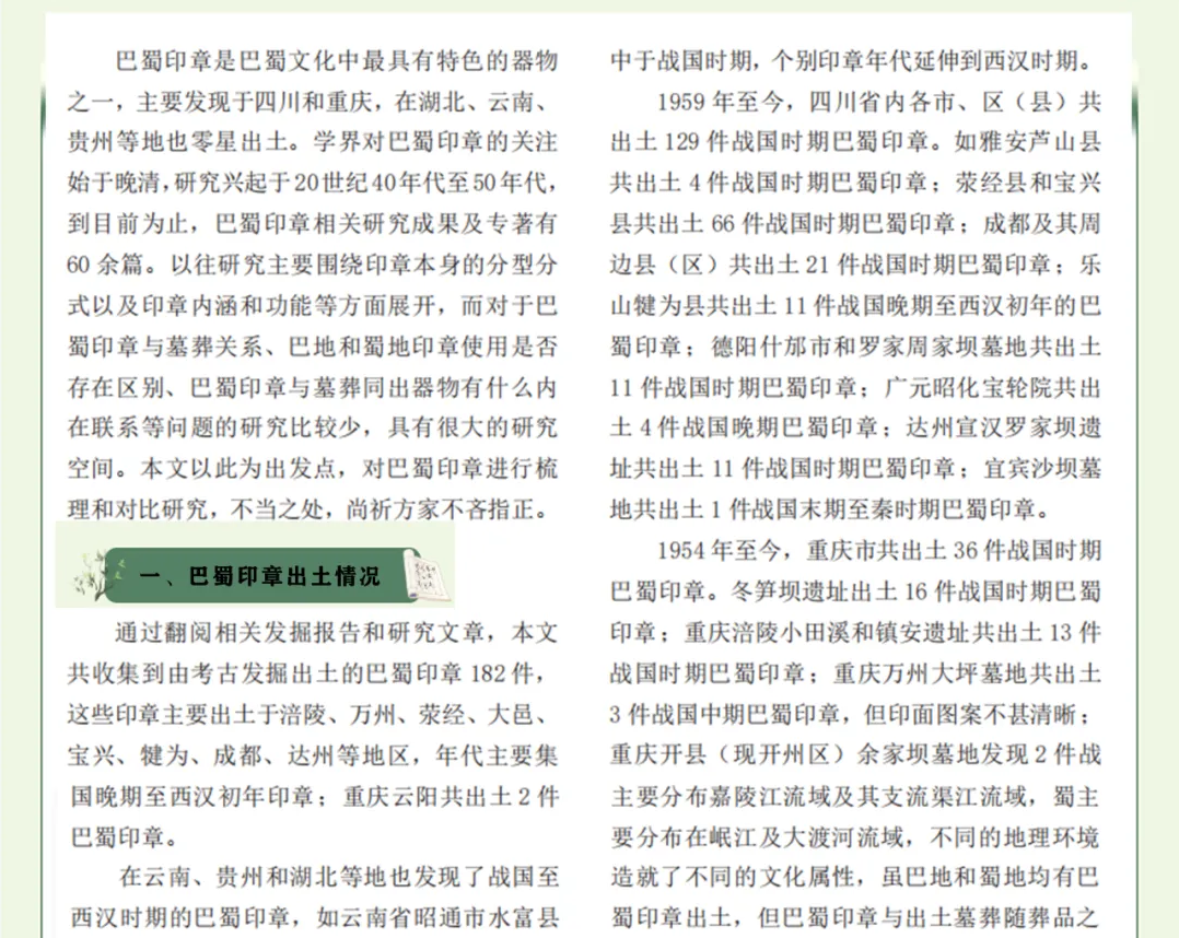 《长江文明》刊文 | 钮珊珊:巴蜀印章及其相关问题研究