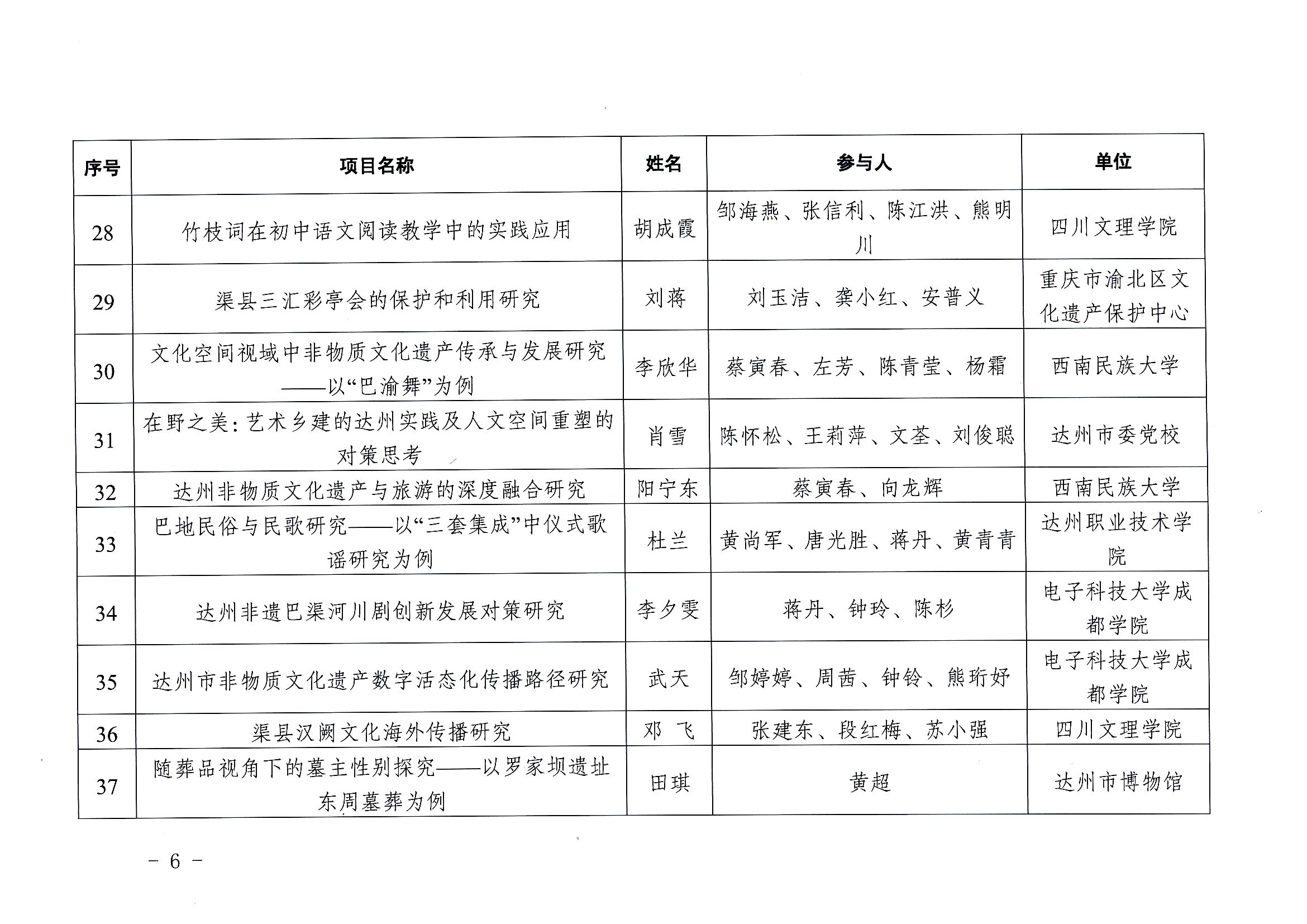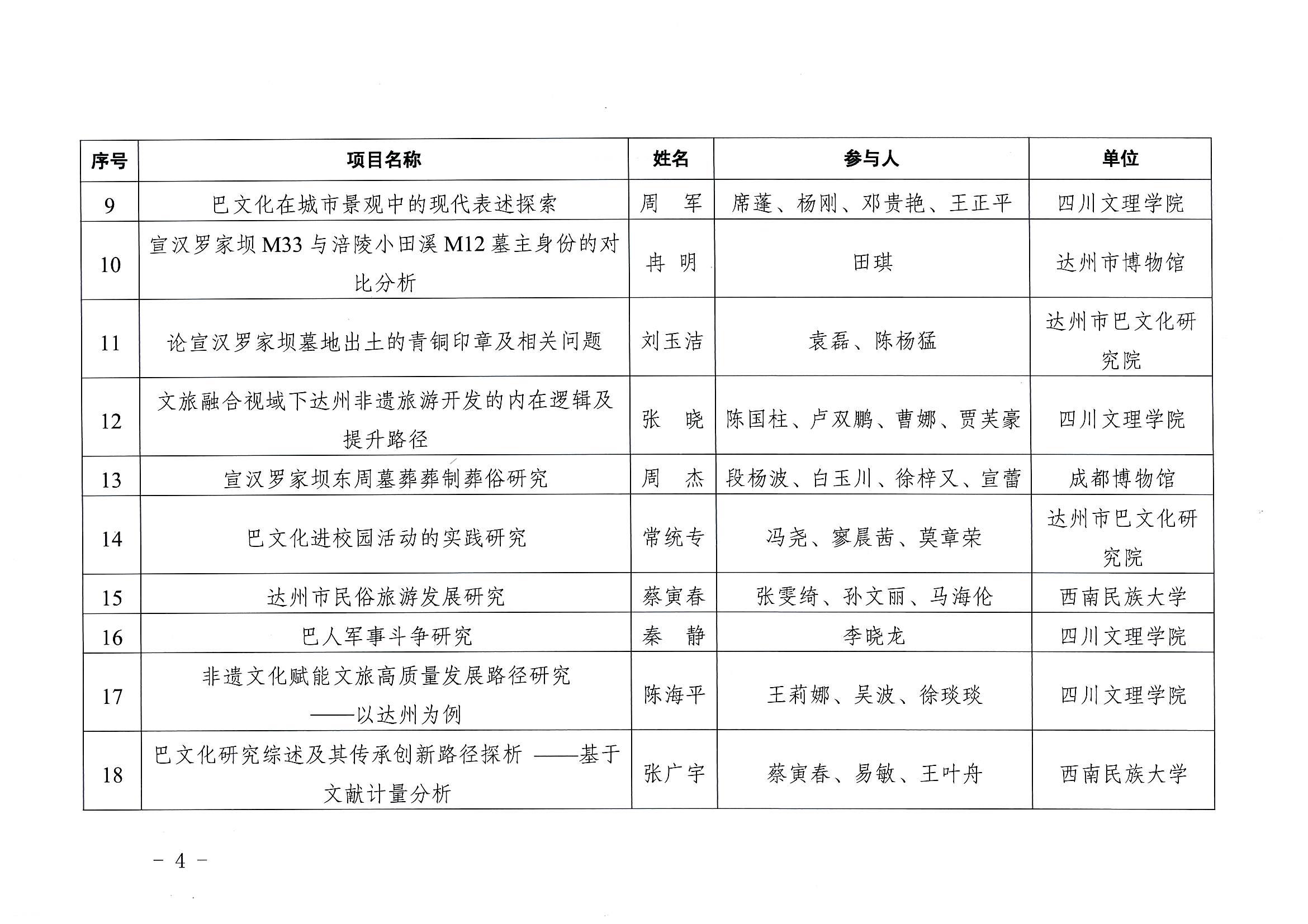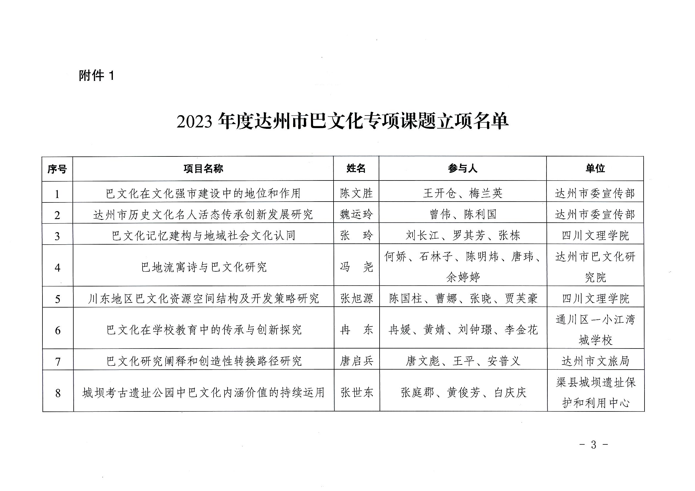 2023年度达州市巴文化专项课题立项结果通报